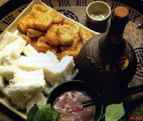 Món này đơn giản chỉ là đậu phụ và bún được ăn với mắm tôm - loại mắm đặc biệt của Việt Nam. Chanh, đường, ớt, giấm sẽ được pha thêm vào mắm tôm để vừa miệng.