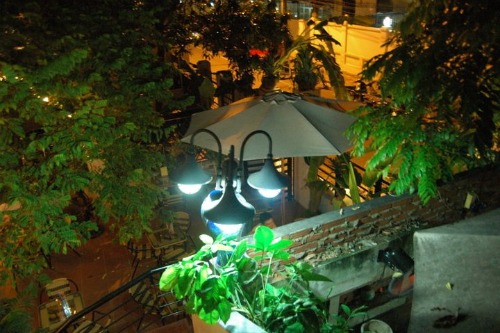 Buổi tối, trong ánh nến lung linh cùng đèn điện bên đường hắt vào trong cái không gian cổ điển của quán mang đến cho quán một vẻ lãng mạn ấn tượng mà không quán café nào ở Hà thành có thể có được.