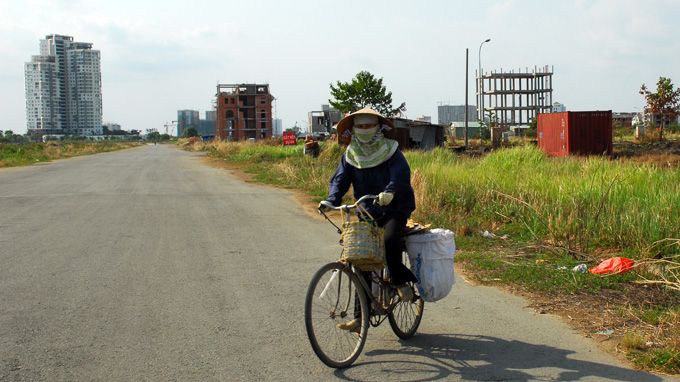 Giá nhà đất ở nhiều nơi trong đó có khu dự án 174ha phường Thạnh Mỹ Lợi, Q.2, TP.HCM đã giảm một nửa - Ảnh: Hoàng Thạch Vân