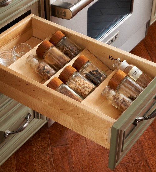 Để nhà bếp trở nên thoáng và gọn gàng hơn, tốt nhất là bạn đừng bày bừa nhiều vật dụng và ý tưởng về một ngăn kéo đa năng thực sự rất tuyệt.