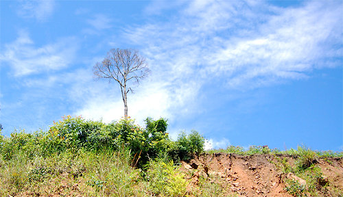 Một thân cây bé nhỏ trơ trọi giữa đất trời là cảnh thường gặp ở Tây Nguyên