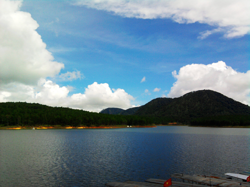 Hồ Tuyền Lâm nước trong veo, những áng mây trắng như mở toang ra cho khoảng trời xanh xuất hiện, bao la, bình lặng.