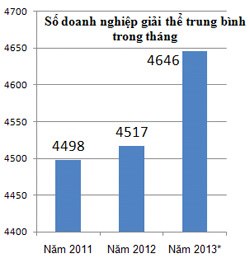 Cũng có ý kiến đại biểu phản ánh sự hoài nghi về đánh giá của Chính phủ với thị trường tài chính, tiền tệ và cho rằng thị trường vàng chưa ổn định, giá vàng trong nước vẫn chênh lệch lớn so với thị trường thế giới. Lãi suất giảm nhưng doanh nghiệp vẫn khó tiếp cận được nguồn vốn, số lượng giải thể, ngừng hoạt động tiếp tục tăng cao. Theo số liệu của Bộ Kế hoạch & Đầu tư, riêng trong tháng 5/2013, đã có 3.590 đơn vị phải đóng cửa, đưa con số tổng từ đầu năm lên 23.226, tức là bằng gần một nửa so với cả năm 2012 (53.972). Số doanh nghiệp giải thể trung bình theo tháng cũng có chiều hướng tăng thêm (Xem biểu đồ).